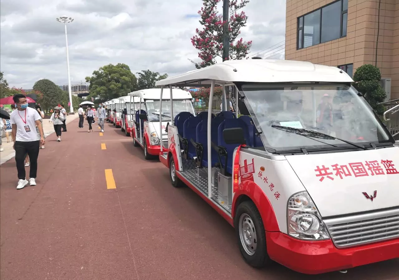 全新定制的46辆五菱新能源观光车带着火红的激情,也于几日前来到江西瑞金蓄势以待,作为江西省2020年旅游产业发展大会的指定用车,助力做好大会接待工作。